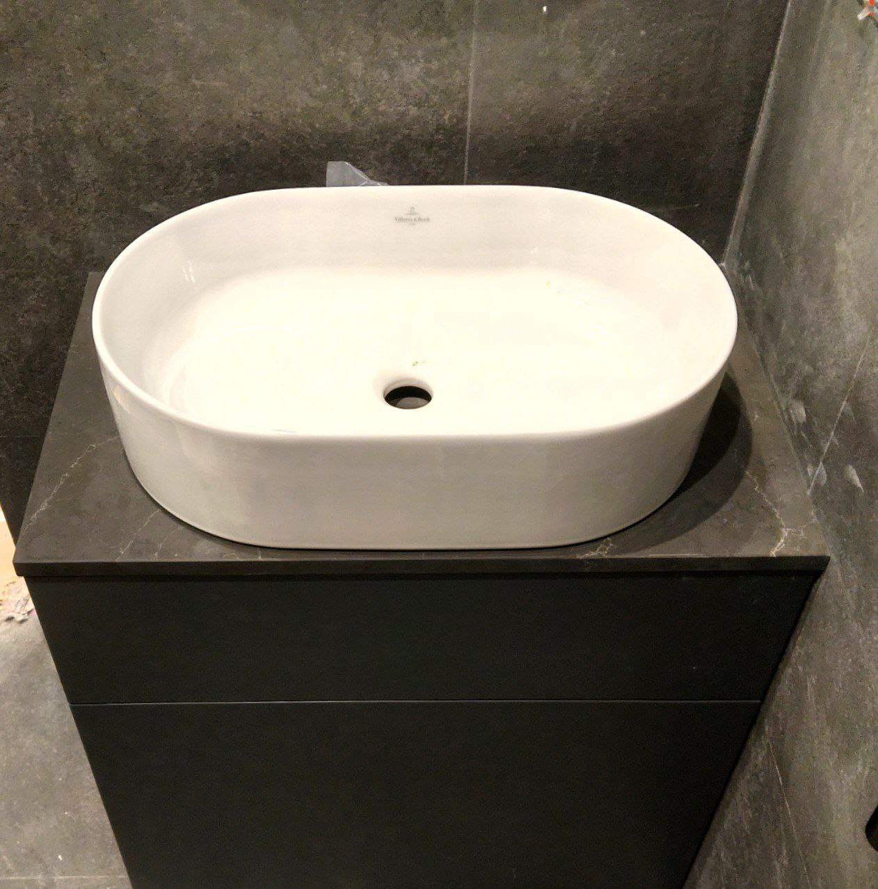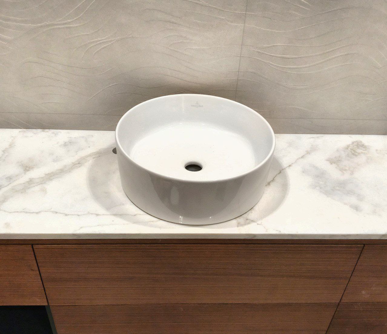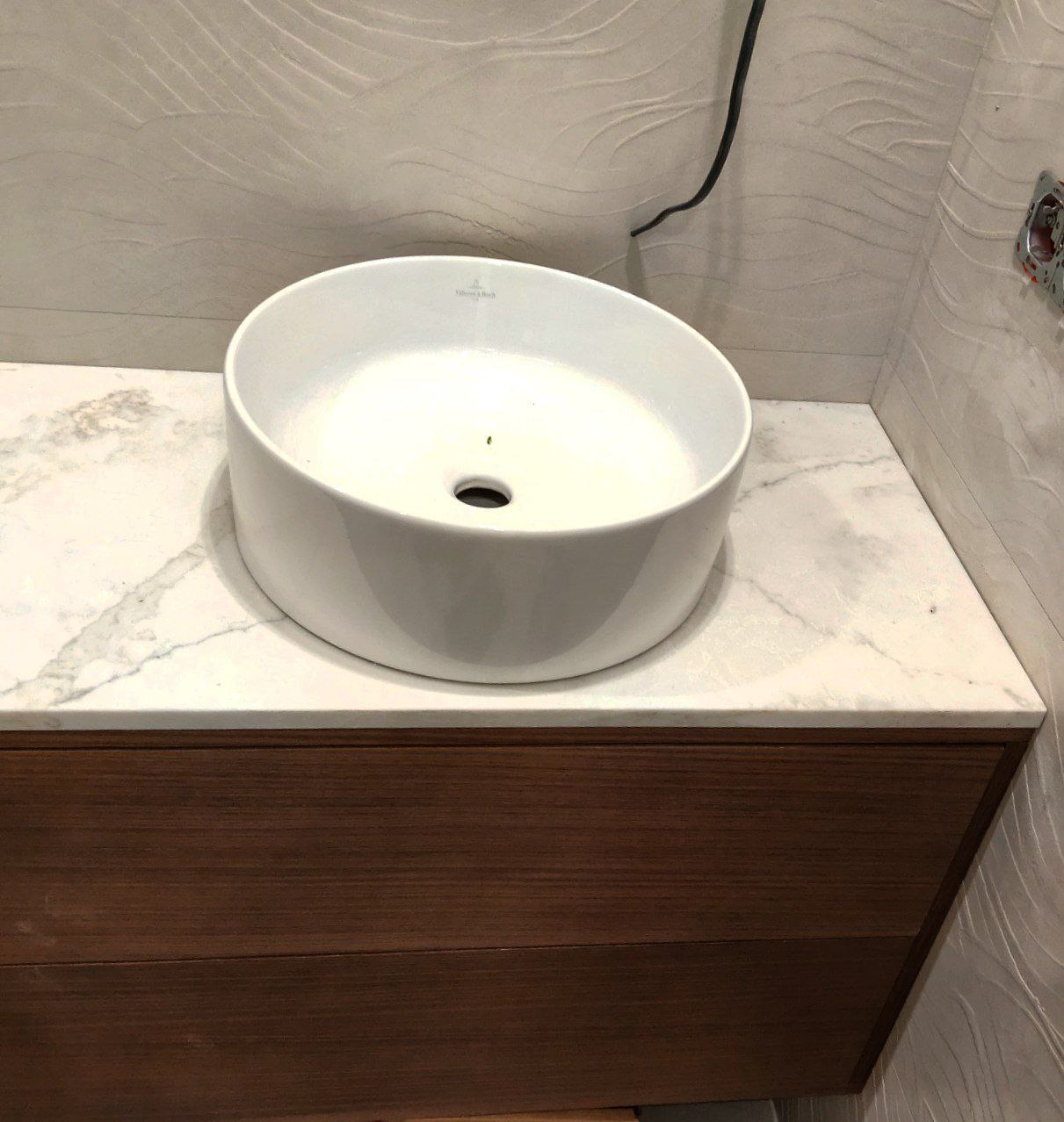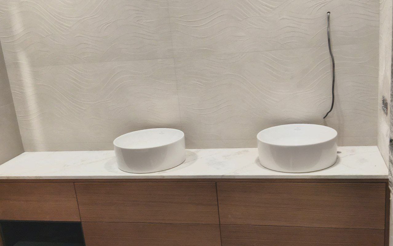 Две кварцевые столешницы с массивными мойками для функционального помещения