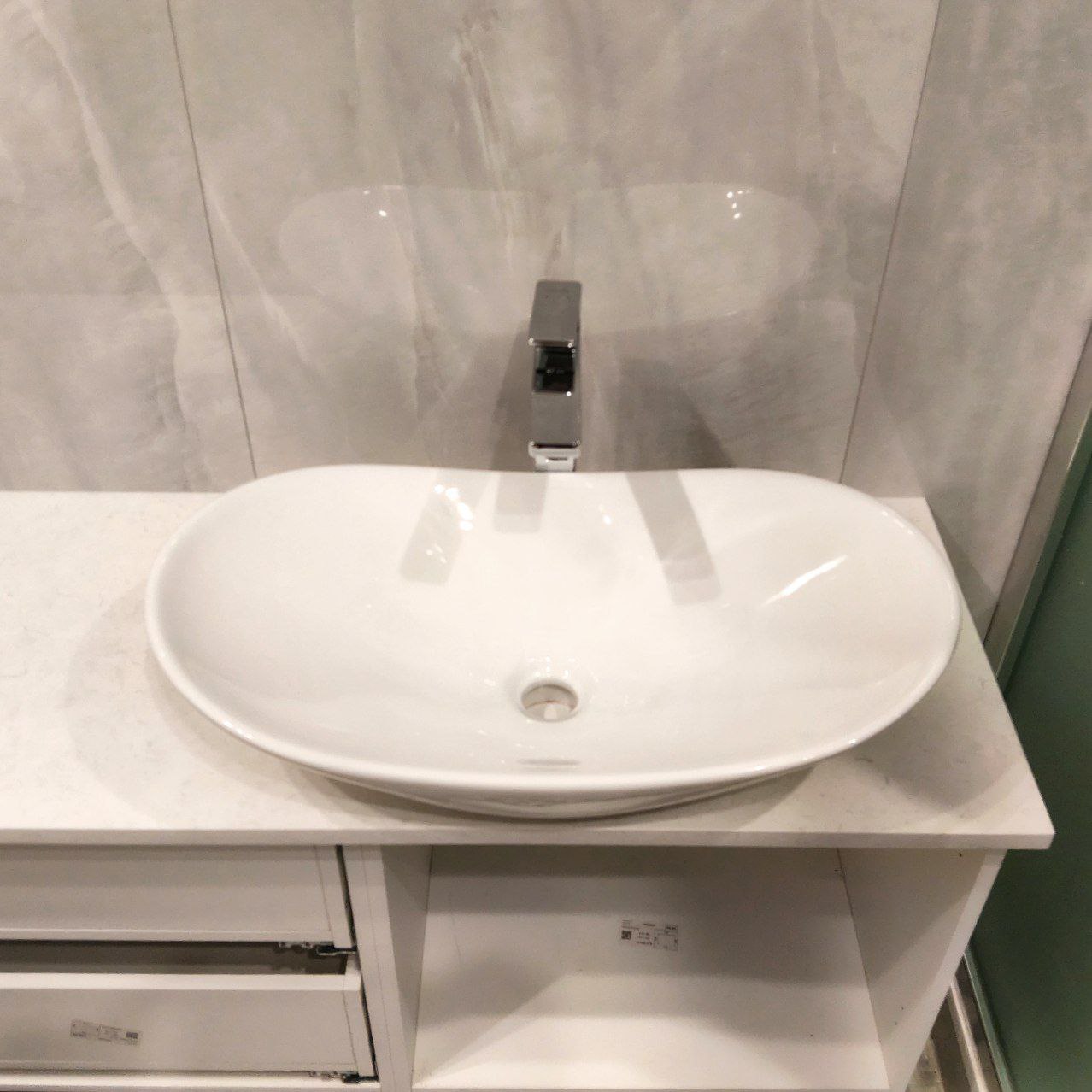 - Столешница и раковина образуют единую композицию, усиливая ощущение гармонии.