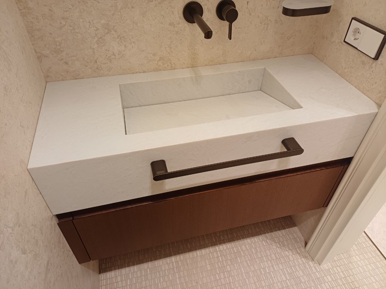 - Использован белый кварцевый агломерат повышенной толщины;