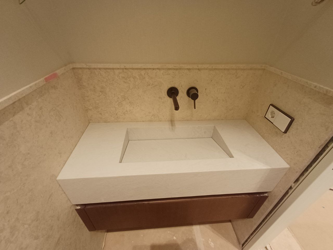 - Глубокой чашей, фрезерованной из цельного кварцевого массива;