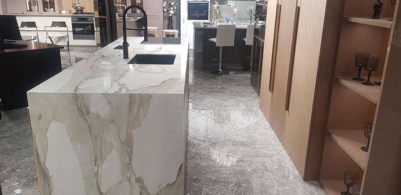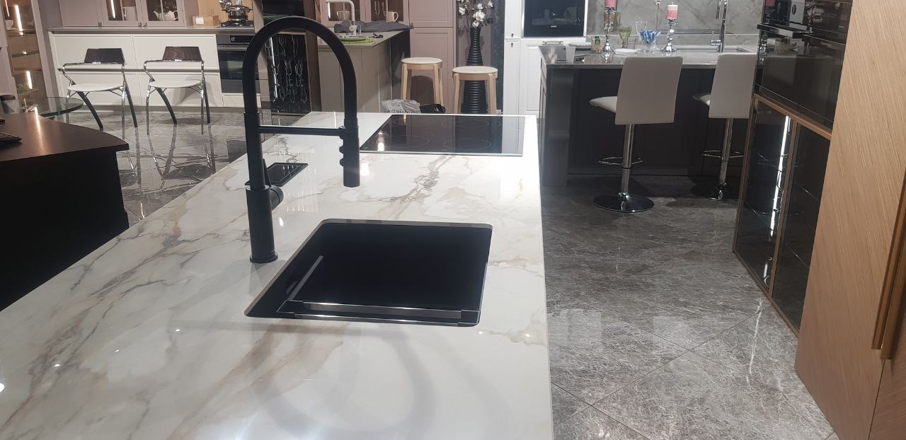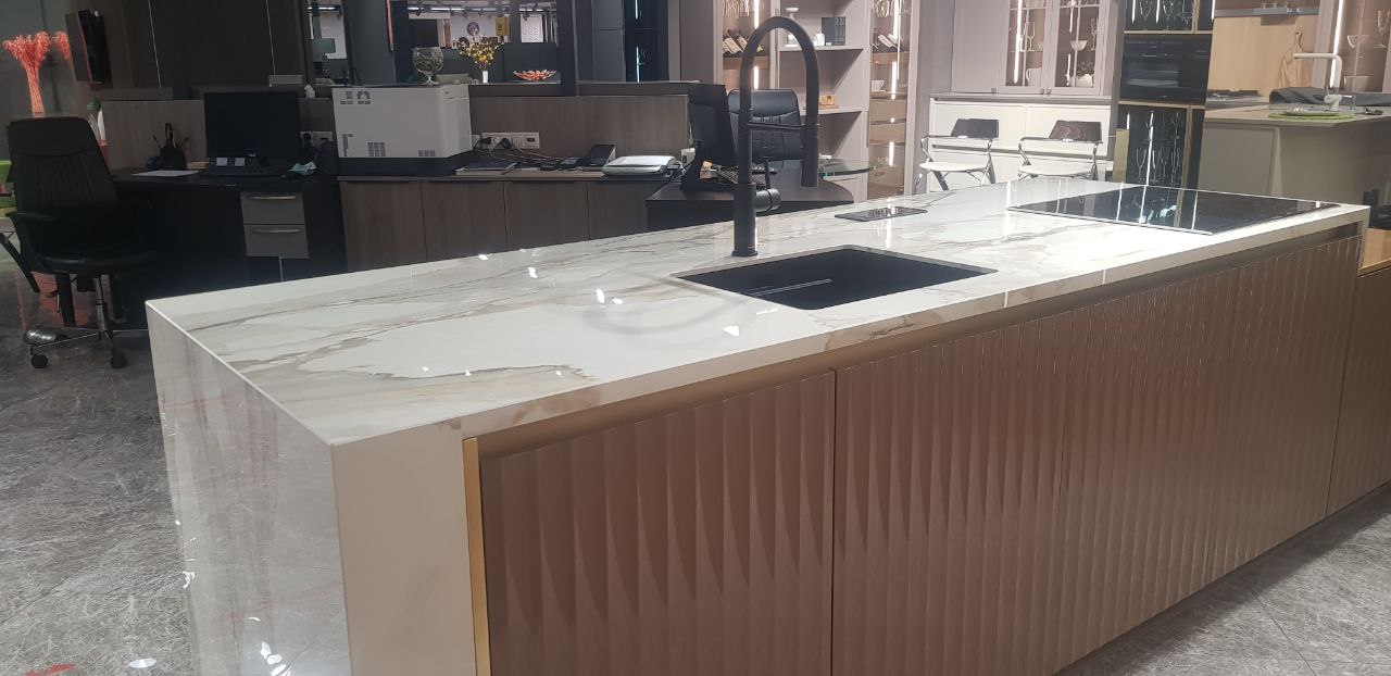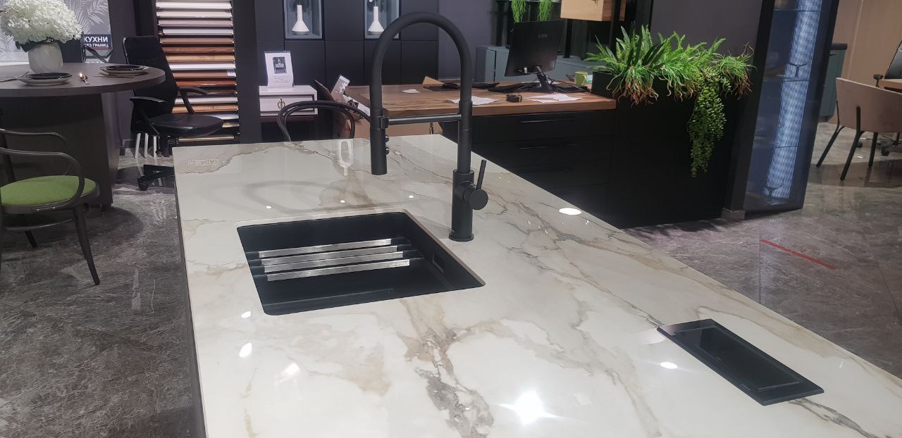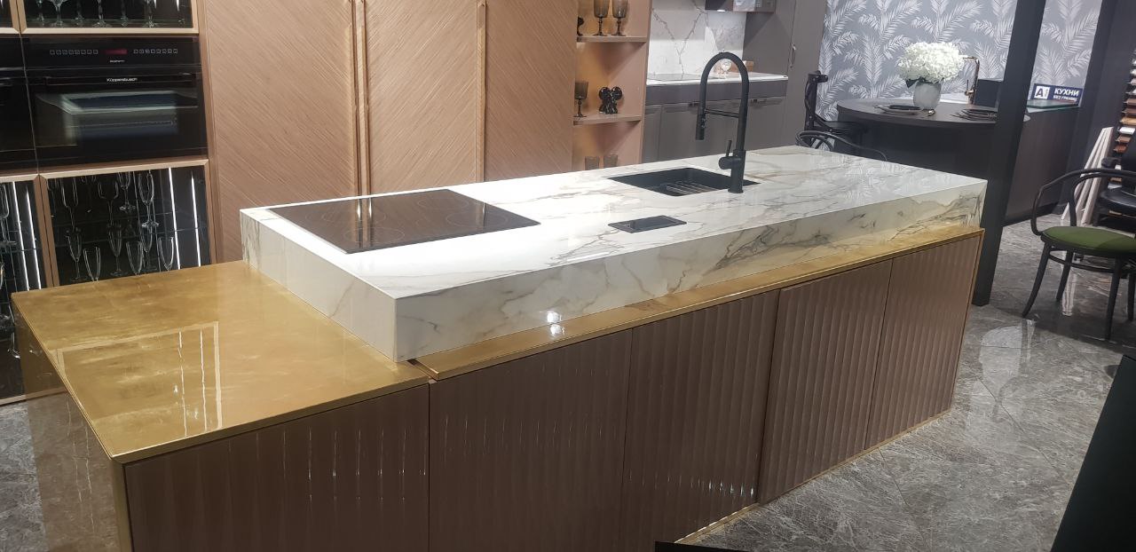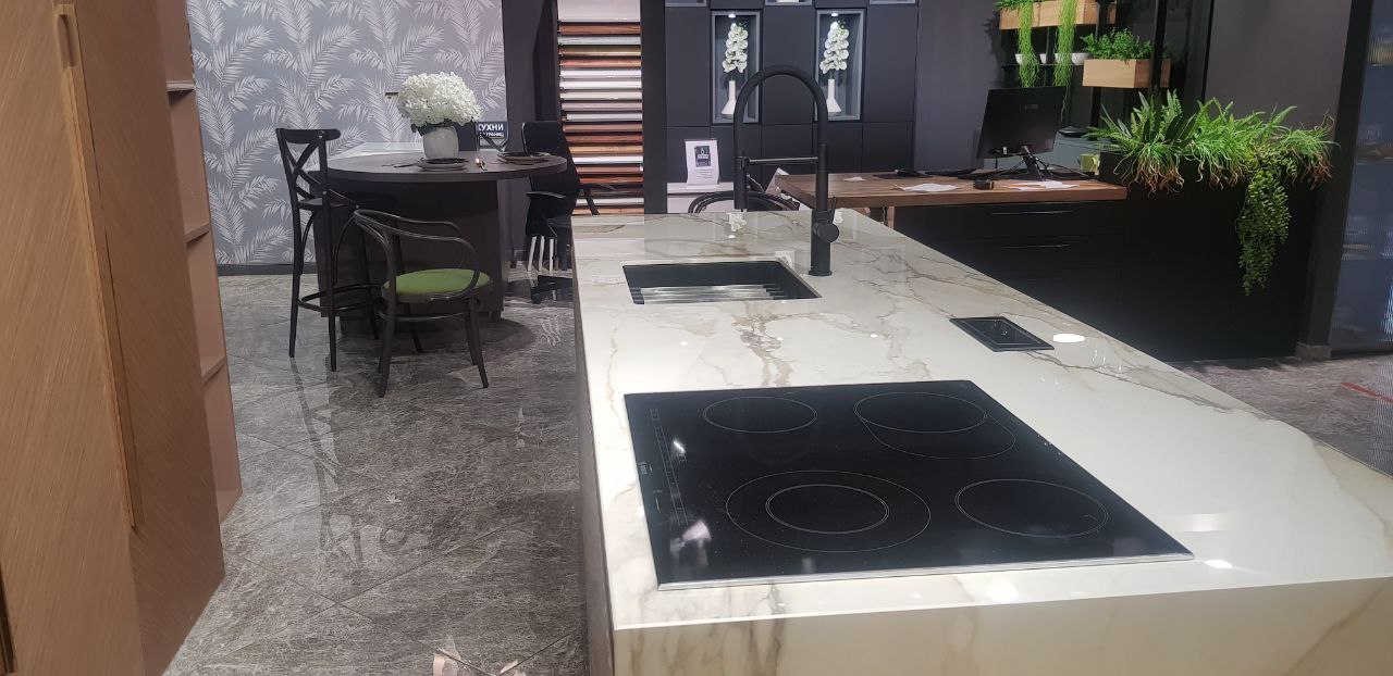 Реализованный проект подтвердил статус кварцевого агломерата как материала премиум-класса, способного трансформировать пространство. Островная столешница из кварца не просто заняла центральное место в интерьере, но и стала его смысловым и композиционным центром. Гармоничное сочетание монументальности форм и изысканности рисунка, безупречная интеграция техники и продуманная эргономика сделали этот объект образцом премиального подхода к созданию интерьеров.