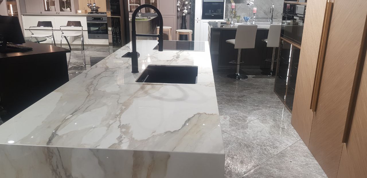 Выбор кварцевого агломерата с имитацией мрамора Calacatta обусловлен его исключительными эстетическими качествами. Особенности материала раскрываются через несколько аспектов: