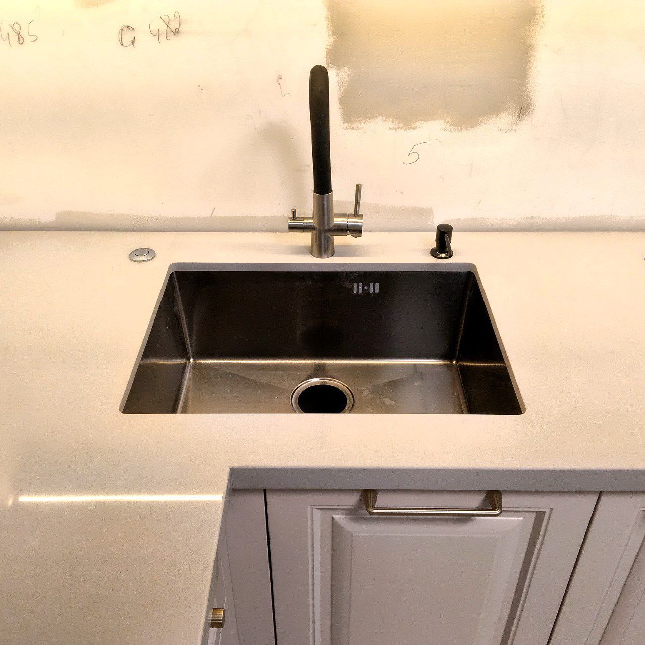 - Встраиваемая мойка и электрическая плита становятся органичной частью столешницы, сохраняя ее безупречно гладкую поверхность.