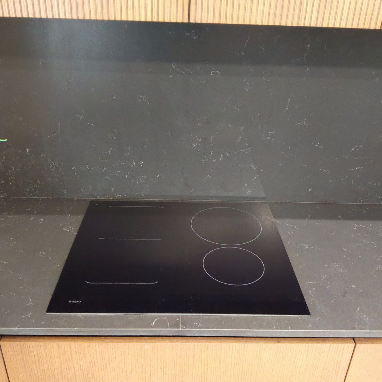 - Мойка и электрическая плита интегрированы в столешницу, образуя единую плоскость.