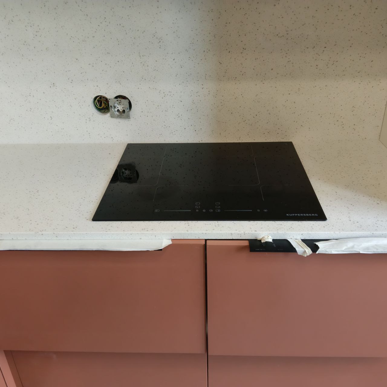 Контрастный узор создает оптическую глубину, а ультратонкий профиль визуально увеличивает площадь помещения, делая кухню современной и технологичной.