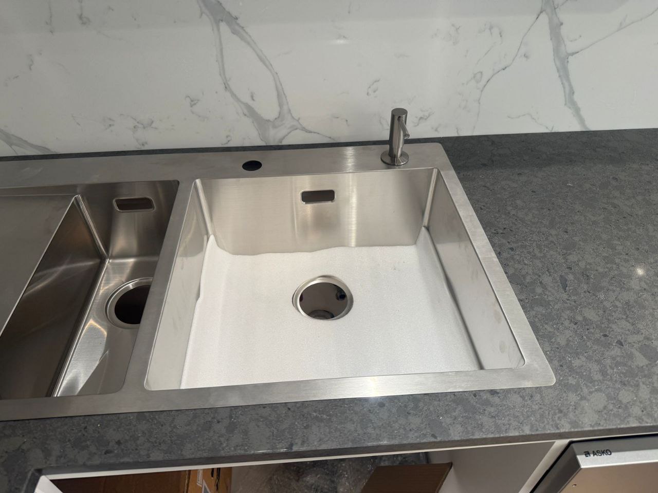 - Встраиваемая мойка, установленная заподлицо с поверхностью для облегчения ухода;